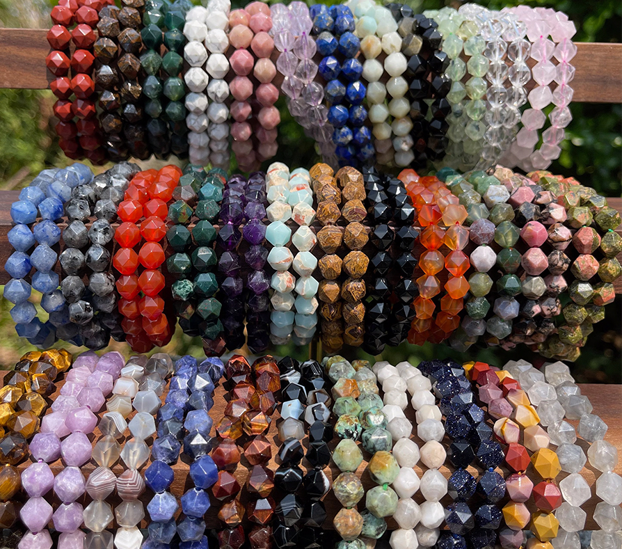 Colorful gemstone bracelets handcrafted with semi-precious stones—loved for healing, fashion, and gifting in wellness and accessory markets abroad.